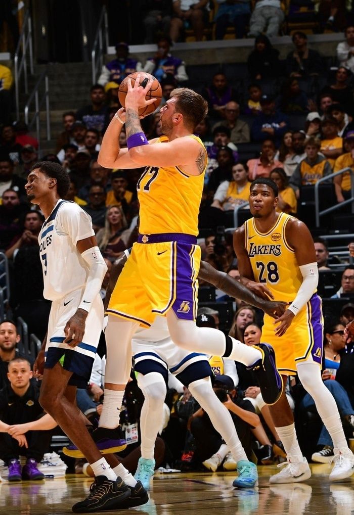 东契奇在揭幕战砍下43分,在湖人队史揭幕战得分中排名第三,第二场砍下49分,就此成为NBA历史上首位在赛季前两场比赛连续打成40+10+5的球员,同时也是湖人队史首位在赛季前两场比赛连续砍下40+得分的球员。相比以往中远距离投篮多的打法,东契奇在新赛季开始后采取了大量的突破,这也是他命中率大幅提升的原因。可实际上,湖人阵中并没有能够持续得分的球员,东契奇只能不断在进攻端消耗自己。